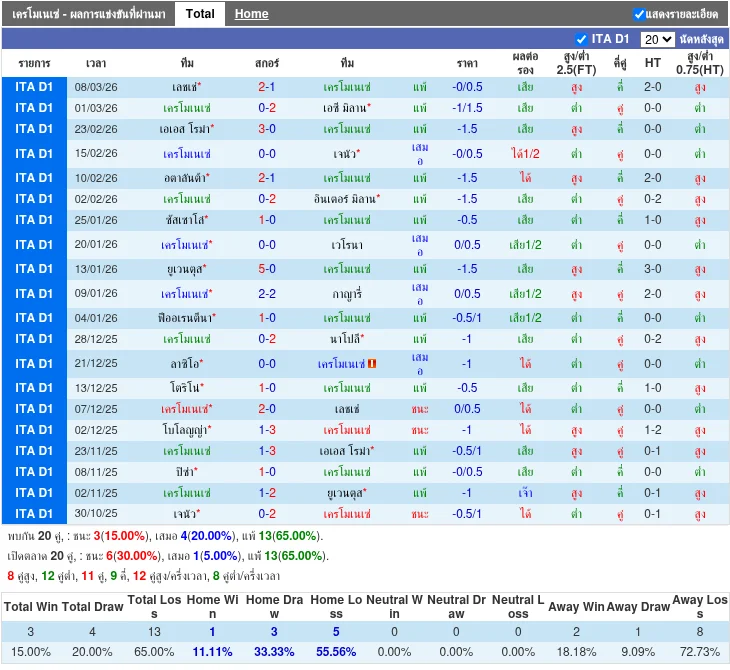 - 08/03/2026 | เซเรีย อา | เลชเช่ vs เครโมเนเซ่ | 2 - 1 | เลชเช่ ชนะ