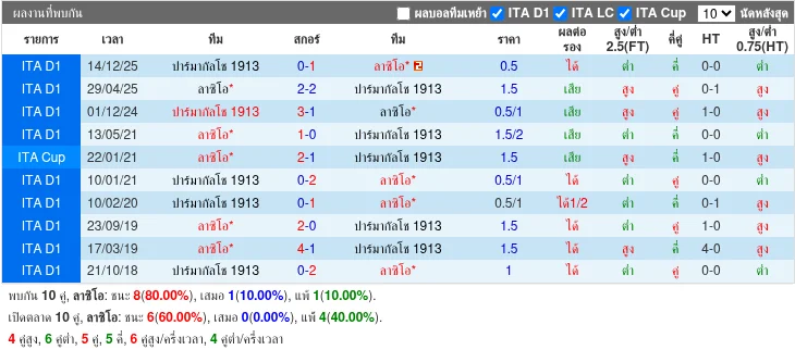 - 2025-12-13 | เซเรีย อา | พาร์ม่า vs ลาซิโอ | 0 - 1 | ลาซิโอ