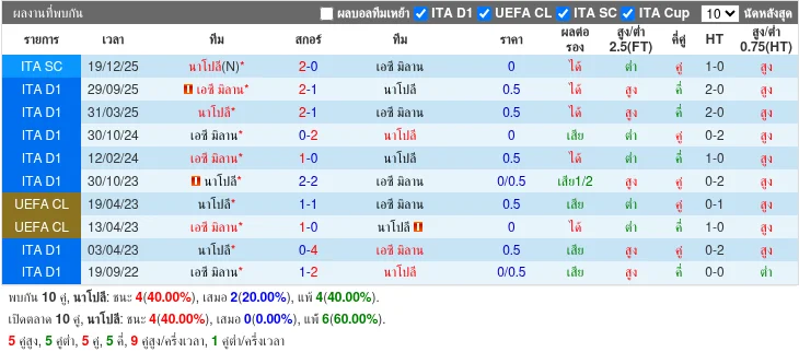 ห้าด่านหลัง Napoli ชนะ 3 ครั้ง ขณะที่ Milan ชนะ 2 ครั้ง สลับกันไปมา โดย Napoli มีแนวโน้มทำได้ดีกว่าในช่วงหลัง