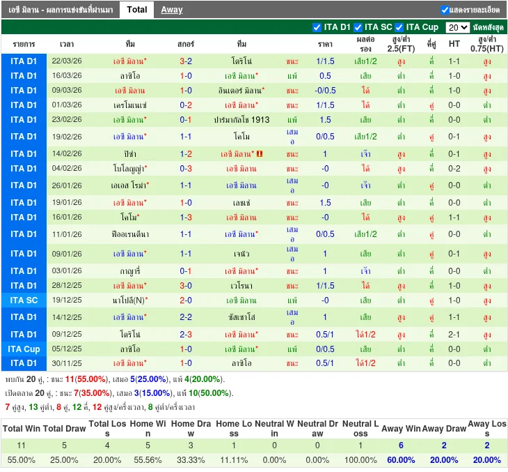 ฟอร์มทีมเยือน: เอซี มิลาน