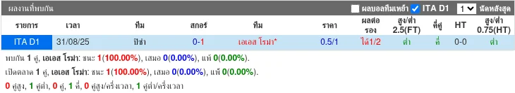 - 2025-08-30T18:45:00+00:00 | Serie A | ปิซ่า vs โรม่า | 0-1 | โรม่า