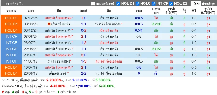 - 2025-12-07T15:45:00+00:00 | Eredivisie | สปาร์ต้า รอตเตอร์ดัม vs เอ็นเอซี เบราดา | 1-0 | สปาร์ต้า รอตเตอร์ดัม