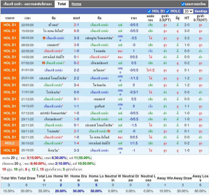 - 2026-03-15T15:45:00+00:00 | Eredivisie | โก อะเฮด อีเกิลส์ vs เอ็นเอซี เบราดา | 6-0 | โก อะเฮด อีเกิลส์