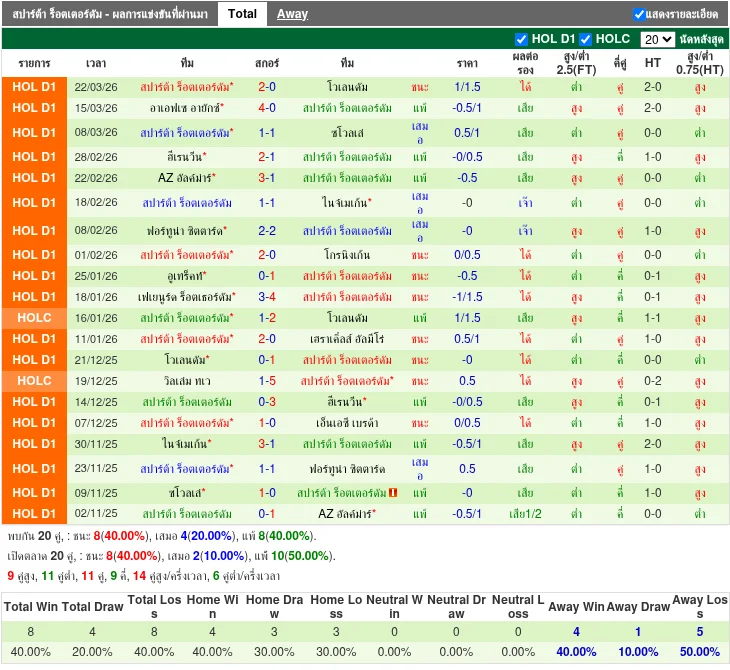 ฟอร์มทีมเยือน: สปาร์ต้า ร็อตเตอร์ดัม