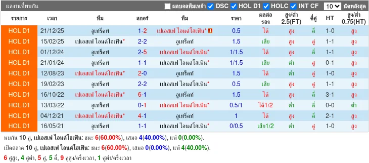 - 2025-12-21T11:15:00+00:00 | Eredivisie | Utrecht vs PSV Eindhoven | 1-2 | PSV Eindhoven ชนะ