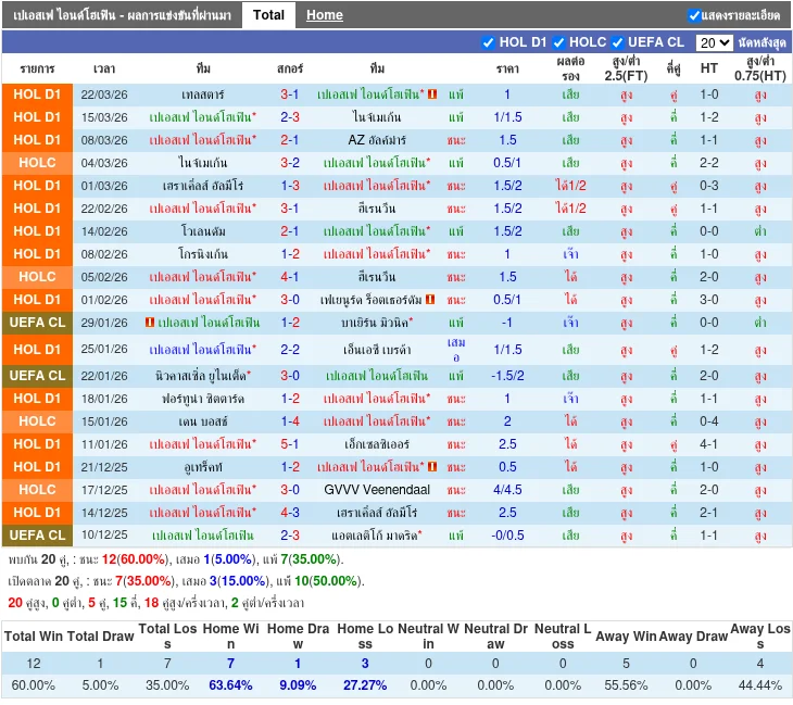 ชนะ 1 นัดจาก 5 นัดที่ระบุ (3-1) ซึ่งเป็นสถิติของทีมเหย้าในการพบ PSV