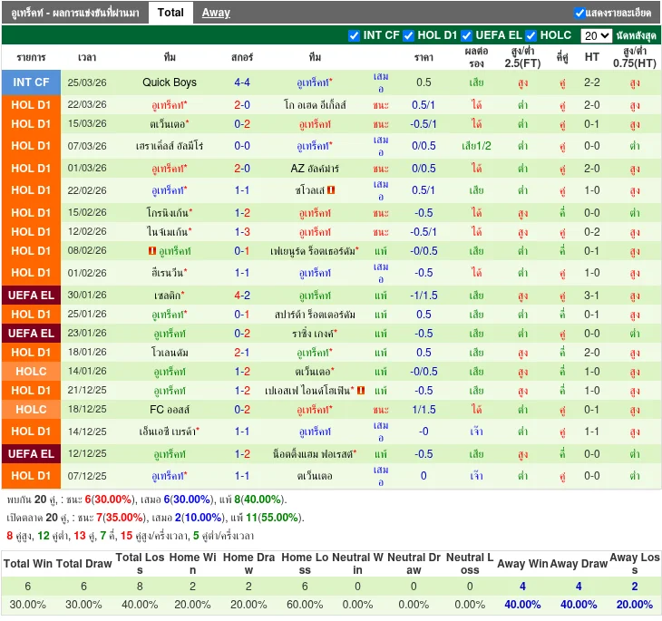 ฟอร์มทีมเยือน: อูเทร็คท์
