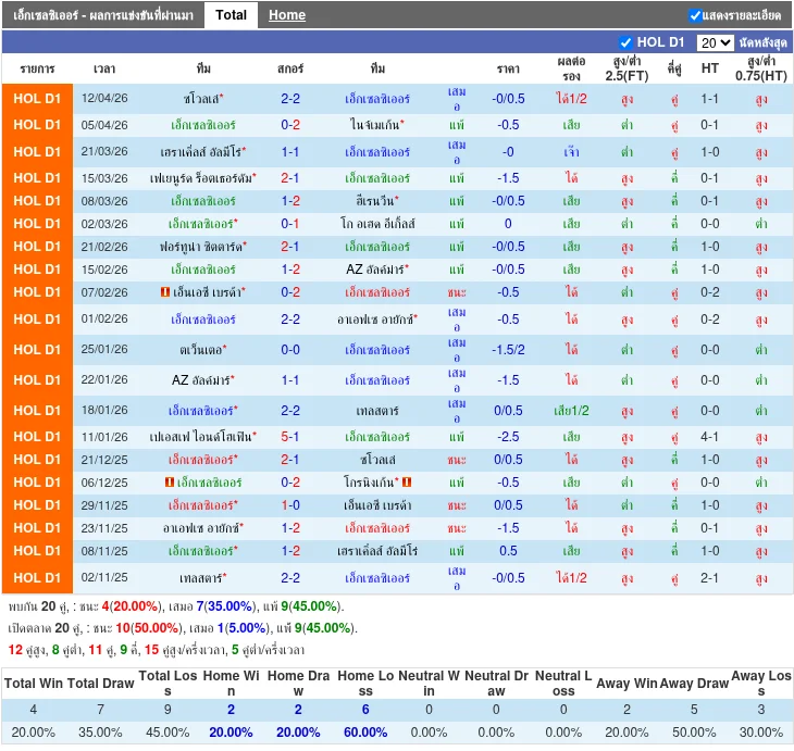 - 2026-03-20 | Eredivisie | Heracles vs Excelsior | 1 - 1 | เสมอ