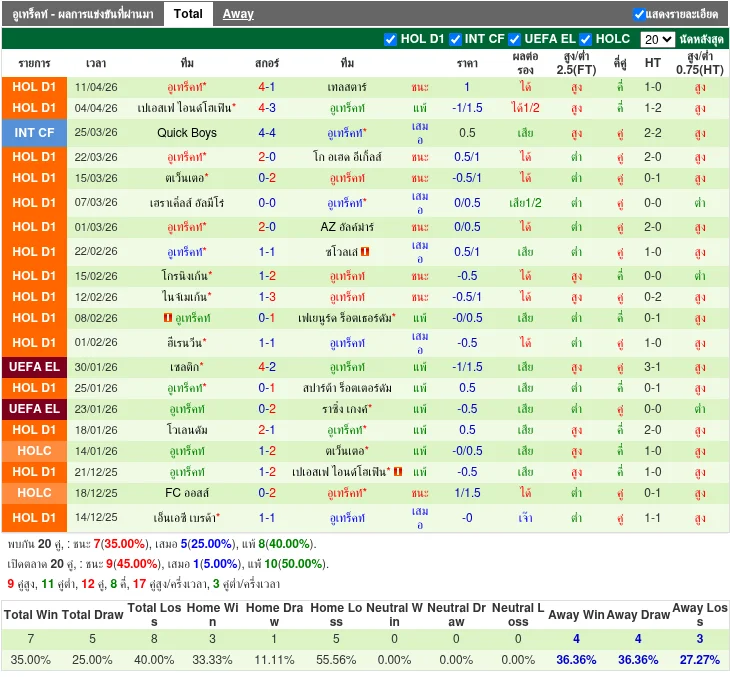 ฟอร์มทีมเยือน: อูเทร็คท์