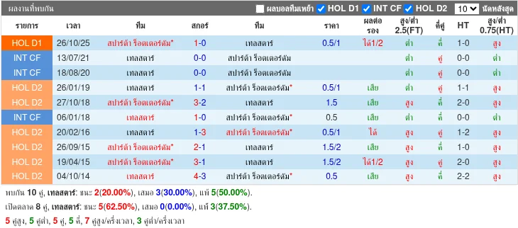 สถิติพบกัน 5 นัดล่าสุด สปาร์ตา โรเตอร์ดาม ชนะ 2 เสมอ 3