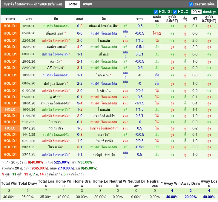 ฟอร์มทีมเยือน: สปาร์ต้า ร็อตเตอร์ดัม