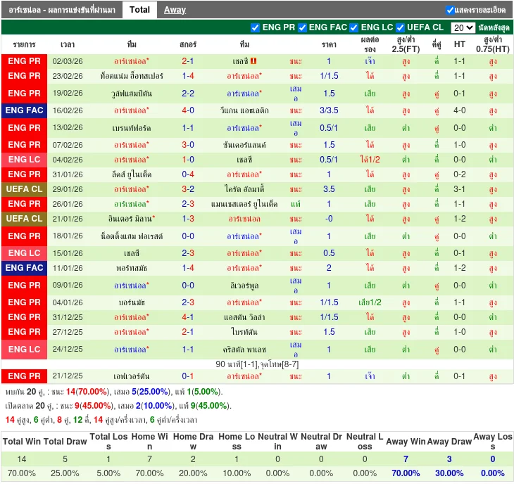 ฟอร์มทีมเยือน: อาร์เซน่อล