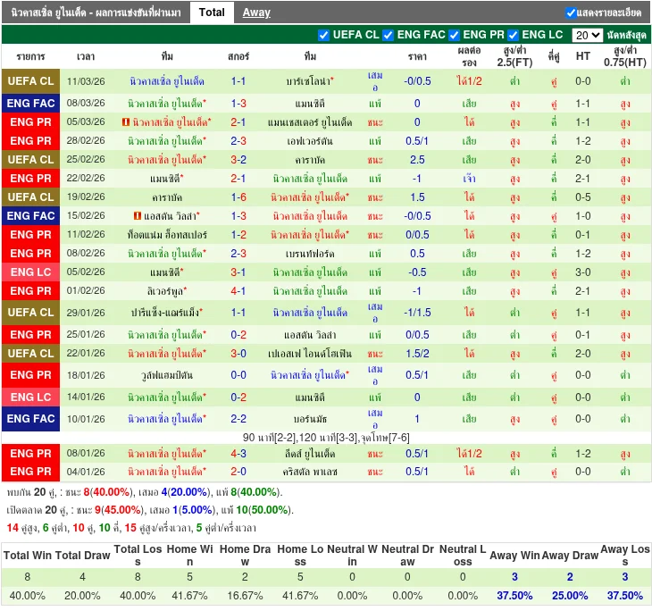 ฟอร์มทีมเยือน: นิวคาสเซิ่ล ยูไนเต็ด