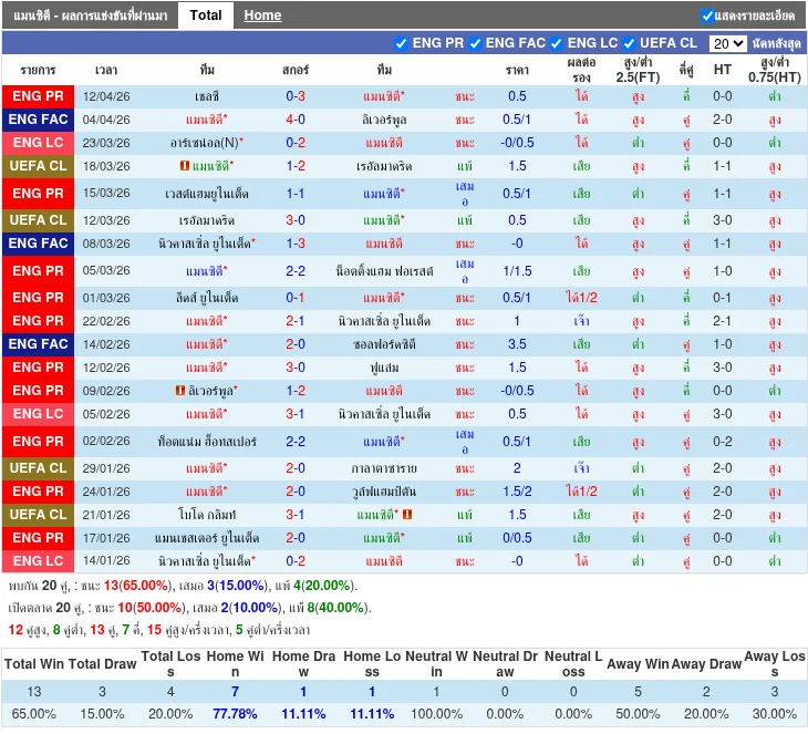 - 2026-03-14 20:00 | Premier League | West Ham - Manchester City | 1 - 1 | เสมอ
