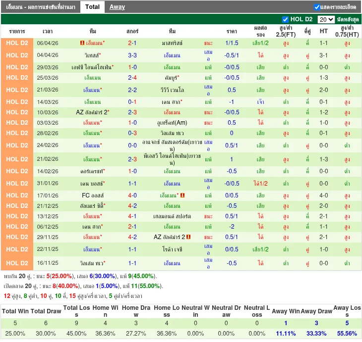 - 2021-04-04T14:45:00+00:00 | Eredivisie | Emmen vs Waalwijk | 3-1 | Emmen ชนะ
