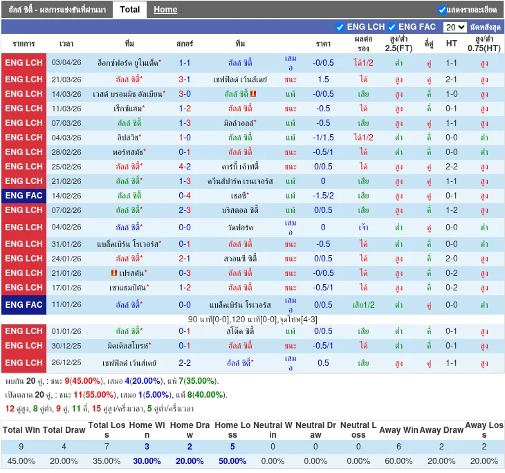 สถิติ H2H ล่าสุด