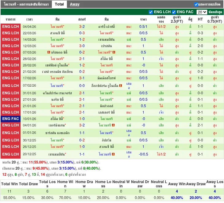 ฟอร์มทีมเยือน: โคเวนทรี