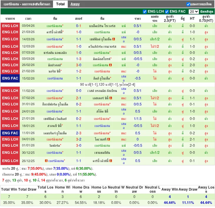 ฟอร์มทีมเยือน: เบอร์มิงแฮม