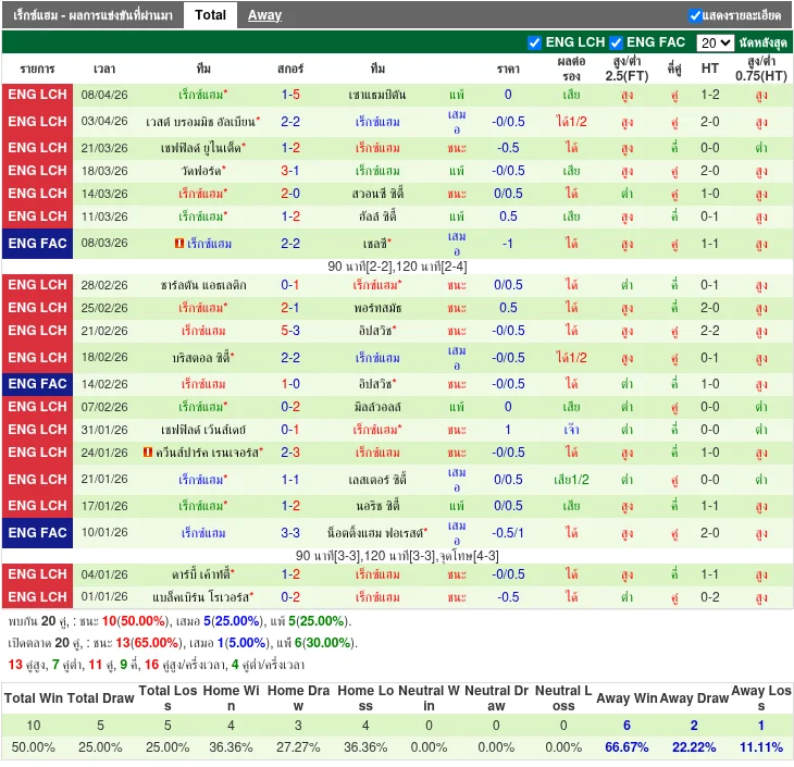 - 2026-04-03T14:00:00+00:00 | Championship | West Brom vs Wrexham | 2 - 2 | เสมอ