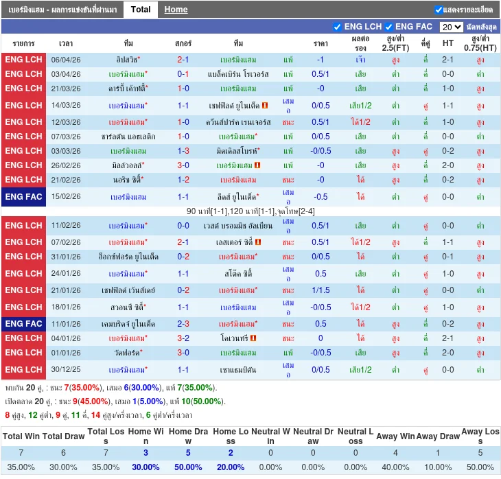ฟอร์มทีมเหย้า: เบอร์มิงแฮม