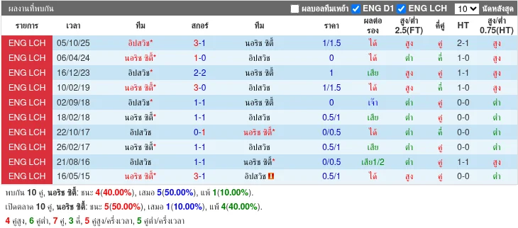 สถิติ H2H ล่าสุด