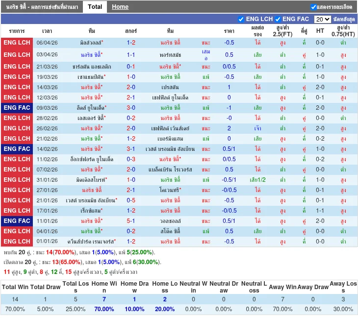 ฟอร์มทีมเหย้า: นอริช ซิตี้