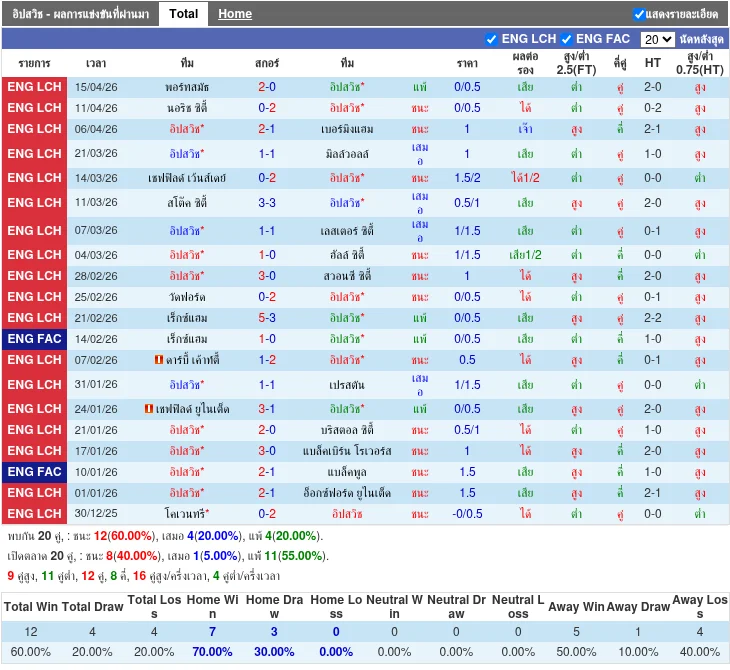 - 2026-03-21T12:30:00+00:00 | Championship | อิปสวิช vs มิลวอลล์ | 1-1 | เสมอ