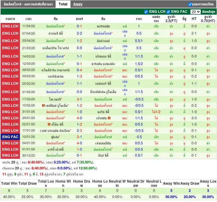ฟอร์มทีมเยือน: มิดเดิลสโบรห์