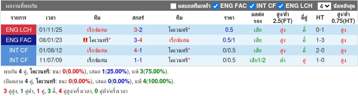 สถิติ H2H ล่าสุด