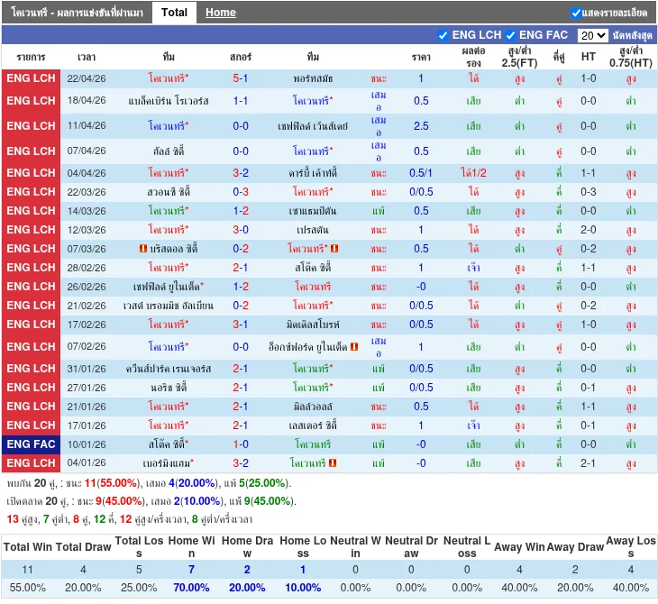 - 2026-04-21 | Championship | คเวนทรี ซิตี้ vs พอร์ตมัธ | 5-1 | คเวนทรี ซิตี้ ชนะ