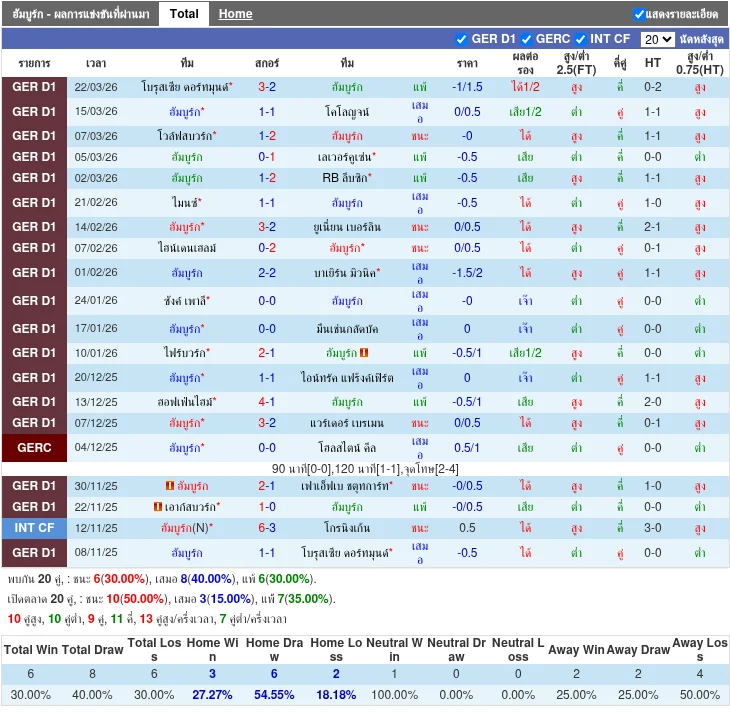 - 2026-03-21T17:30:00+00:00 | Bundesliga | โบรุสเซีย ดอร์ทมุนด์ vs ฮัมบูร์ก เอสวี | 3-2 | ชนะ