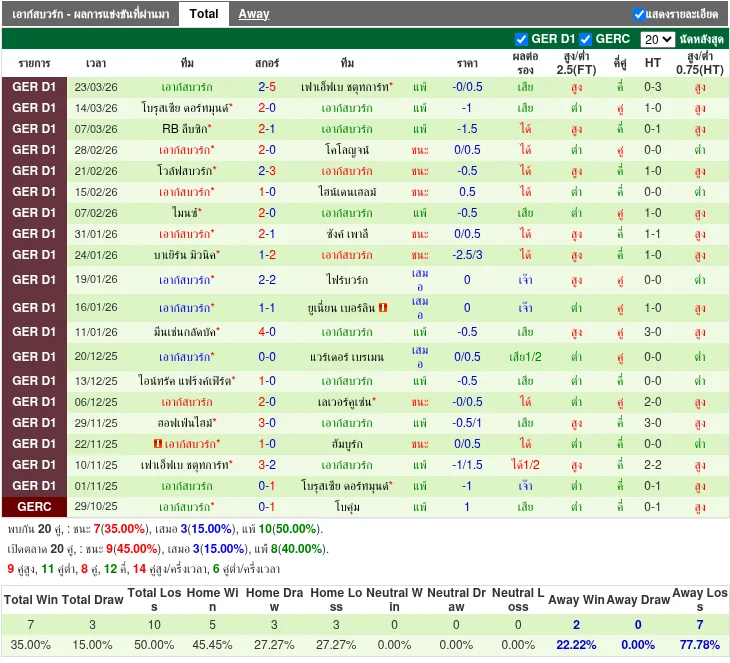 ฟอร์มทีมเยือน: เอาก์สบวร์ก