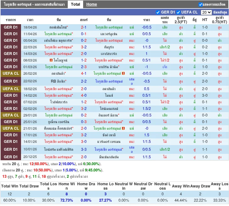 - 2026-03-21 | Bundesliga | Borussia Dortmund vs Hamburger SV | 3 - 2 | ชนะ