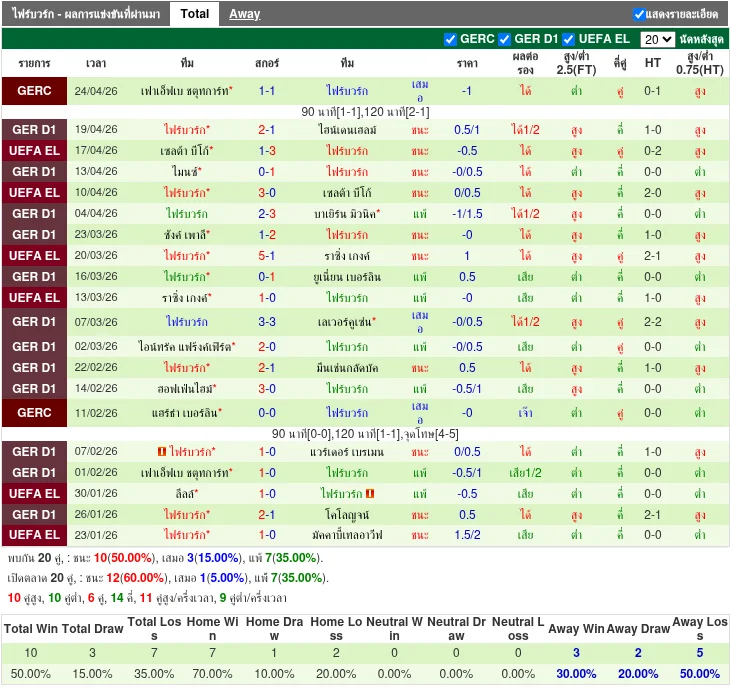 ฟอร์มทีมเยือน: ไฟร์บวร์ก