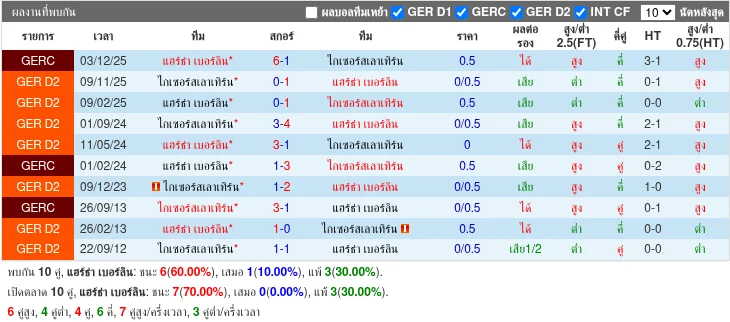 เฮร์ธ่า บีเอสซี ทำสถิติการพบกันค่อนข้างเหนือกว่า Kaiserslautern ใน 5 นัดล่าสุด ชนะ 4 เกม แพ้ 1 เกม ไม่มีการเสมอปรากฏในชุดนี้ สถานการณ์กดดันในรอบนี้ยังคงอยู่ในเชิงบวกสำหรับเฮร์ธ่าเมื่อเทียบกับ Kaiserslautern