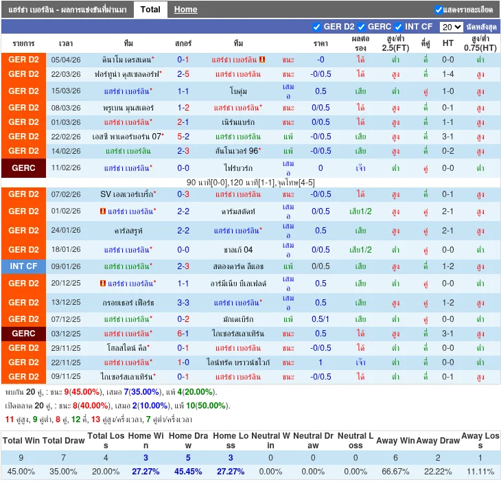 - 2026-03-08T12:30:00+00:00 | 2. Bundesliga | Preußen Münster vs Hertha BSC | 1 - 2 | ชนะ
