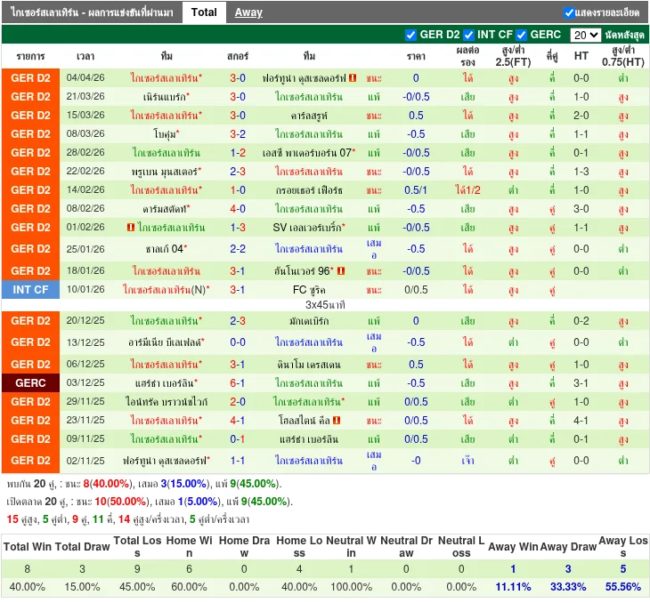 - 2026-04-04T11:00:00+00:00 | 2. Bundesliga | 1. FC Kaiserslautern vs Fortuna Düsseldorf | 3 - 0 | แพ้