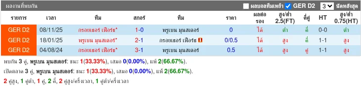 จากการพบกัน 3 นัดล่าสุด เกรเธอร์ ฟูร์ท ชนะ 2 นัด และ Preußen Münster ชนะ 1 นัด ไม่มีผลเสมอ