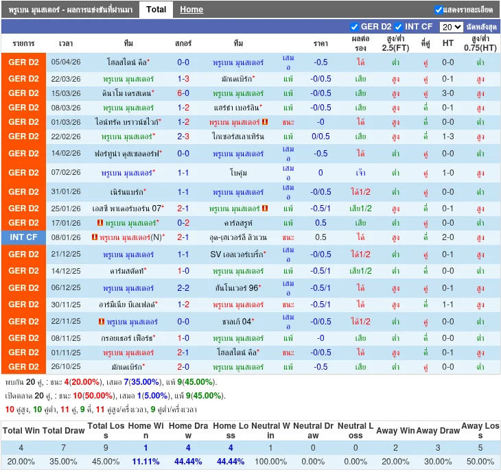 - 2026-04-05 | 2. Bundesliga | โฮลสไตน์ คีล vs พรูเซ่น มุนสเตอร์ | 0 - 0 | เสมอ