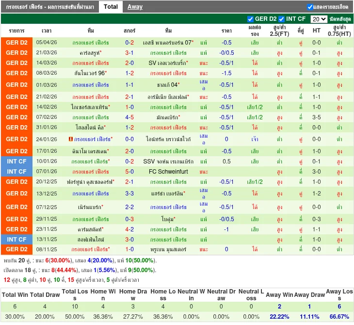 - 2026-04-05 | 2. Bundesliga | สปเวก เกรเธอร์ ฟูร์ท vs เอสซี พาเดอร์บอร์น 07 | 0 - 2 | SC Paderborn 07 ชนะ