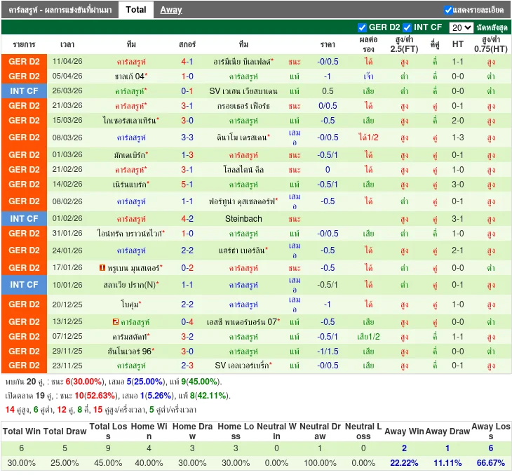 ฟอร์มทีมเยือน: คาร์ลสรูห์