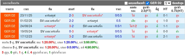 สถิติพบกัน 5 นัดล่าสุด Karlsruher SC ชนะ 3 เสมอ 1 แพ้ 1