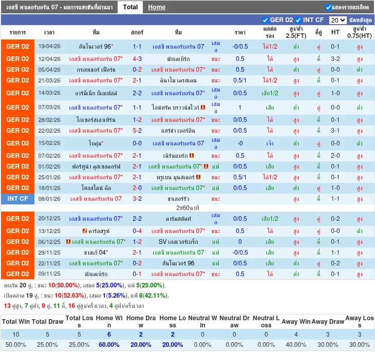 ฟอร์มทีมเหย้า: เอสซี พาเดอร์บอร์น 07