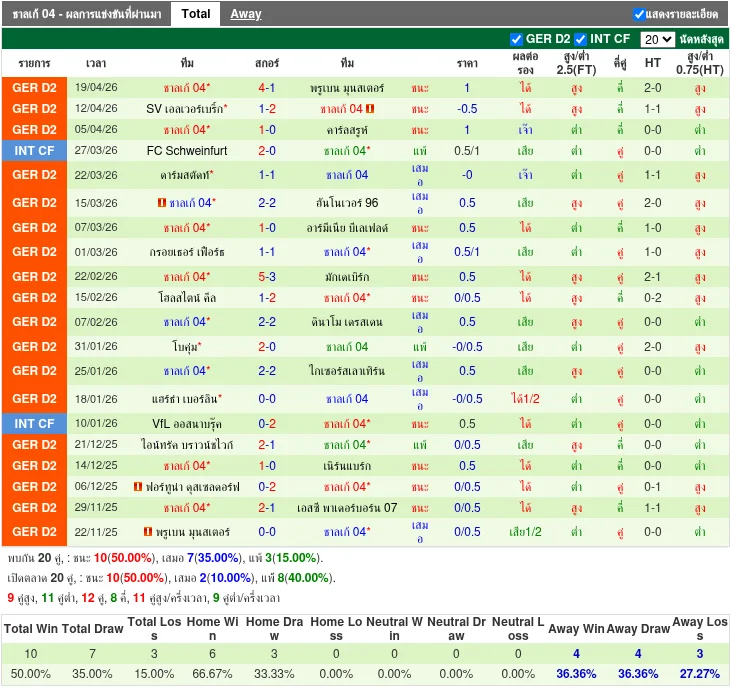 - 2026-04-19T11:30:00+00:00 | 2. Bundesliga | FC Schalke 04 vs Preußen Münster | 4 - 1 | FC Schalke 04 ชนะ
