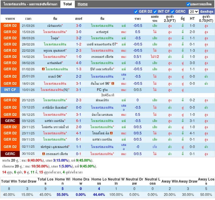 - 2026-03-15 | 2. Bundesliga | 1. FC Kaiserslautern (ไกเซอร์สเลาเทิร์น) vs Karlsruher SC (คาร์ลส์รูเอสซี) | 3-0 | ชนะ