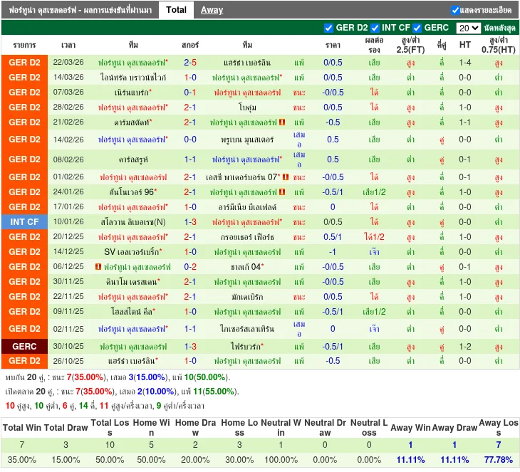 - 2026-03-22 | 2. Bundesliga | Fortuna Düsseldorf (ฟอร์ตูน่า ดุสเซลดอร์ฟ) vs Hertha BSC (เฮร์ธ่า บีเอสซี) | 2-5 | ชนะ