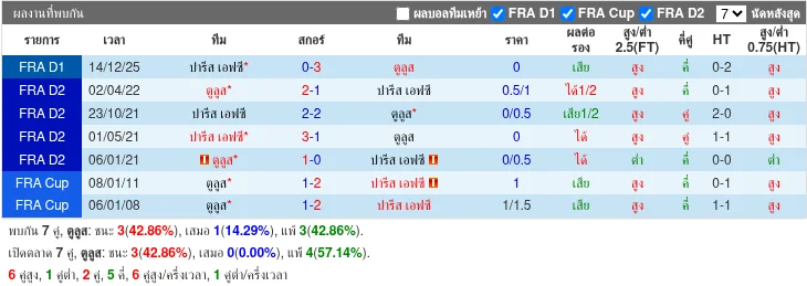 - 2025-12-13 | ลีก เอิง | ปารีส เอฟซี vs ตูลูส | 0 - 3 | แพ้