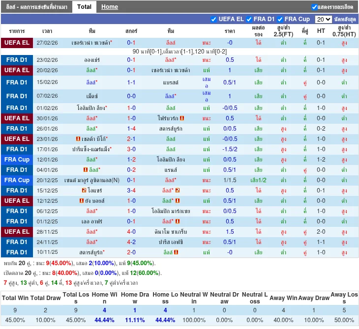 - 2026-02-14 | ลีกเอิง | ลีลล์ vs สตาด แบรสต์ 29 | 1 - 1 | เสมอ