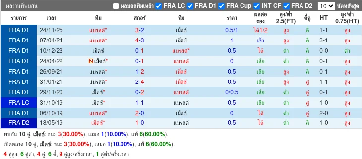 - 2025-11-23 | ลีก เอิง | แบรสต์ vs เม็ตซ์ | 3 - 2 | แบรสต์ ชนะ
