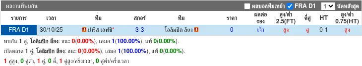 - 2025-10-29 | ลีก เอิง | ปารีส เอฟซี vs โอลิมปิก ลียง | 3 - 3 | เสมอ